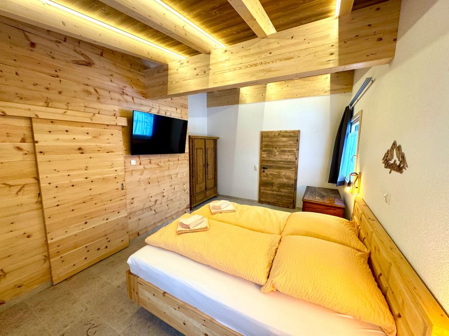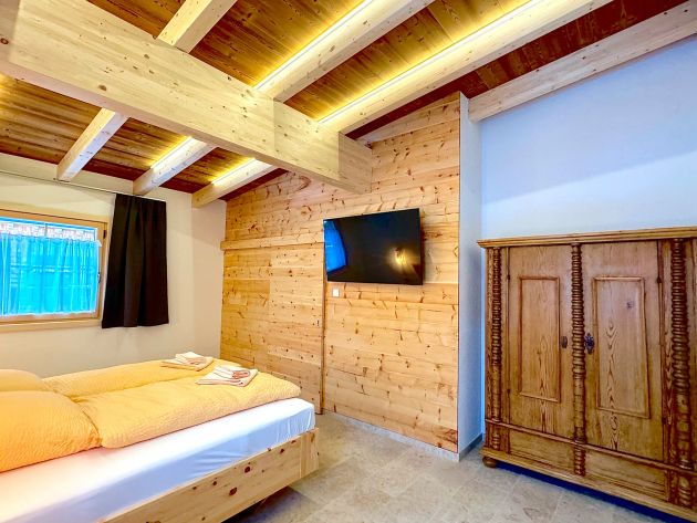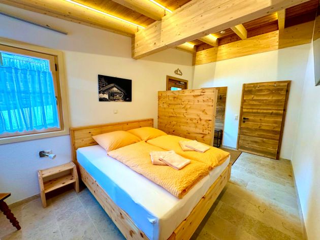 In the two spacious bedrooms with Swiss stone pine beds and walls you will find a particularly restful night's sleep, each bedroom has its own en suite bathroom.