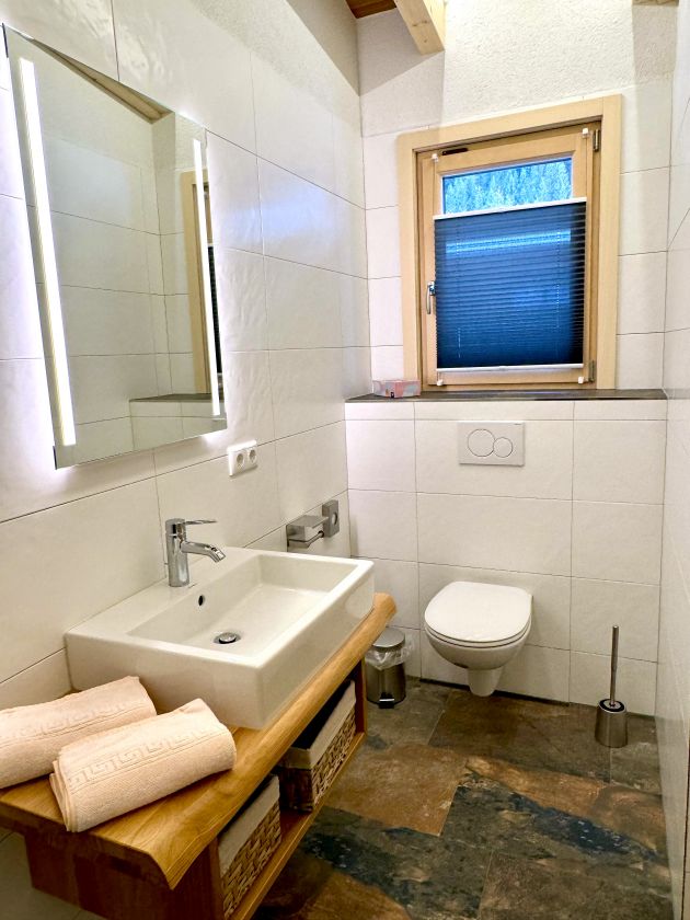 A large entrance area and a separate guest toilet complete the chalet.