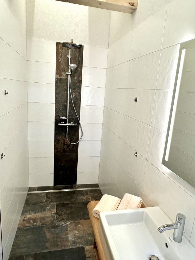 A wellness area with sauna and rain shower in the neighboring building can be booked on request.
